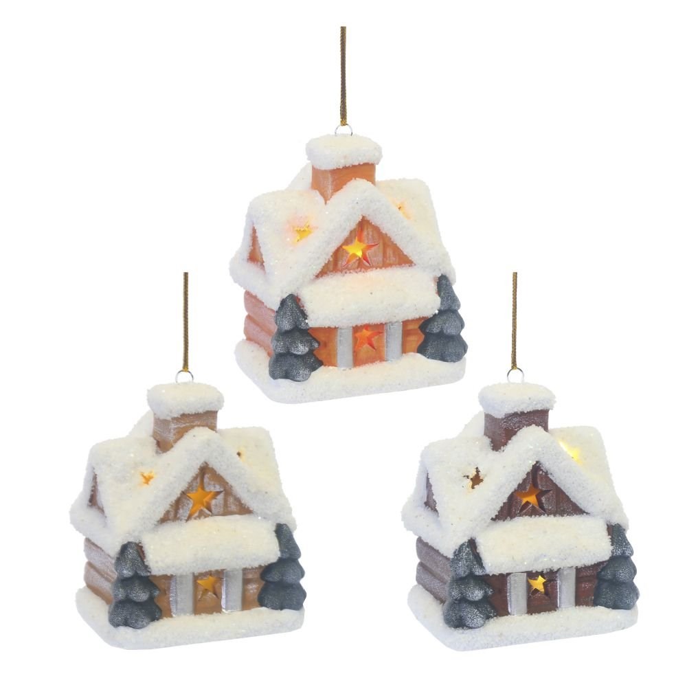 Украшение новогоднее "Домик" с подсветкой , изготовлено из керамики. Размер: L6,5 W5 H8 см, работает от 2-х батареек LR44 (не прилагаются). Представлено в трех вариантах.