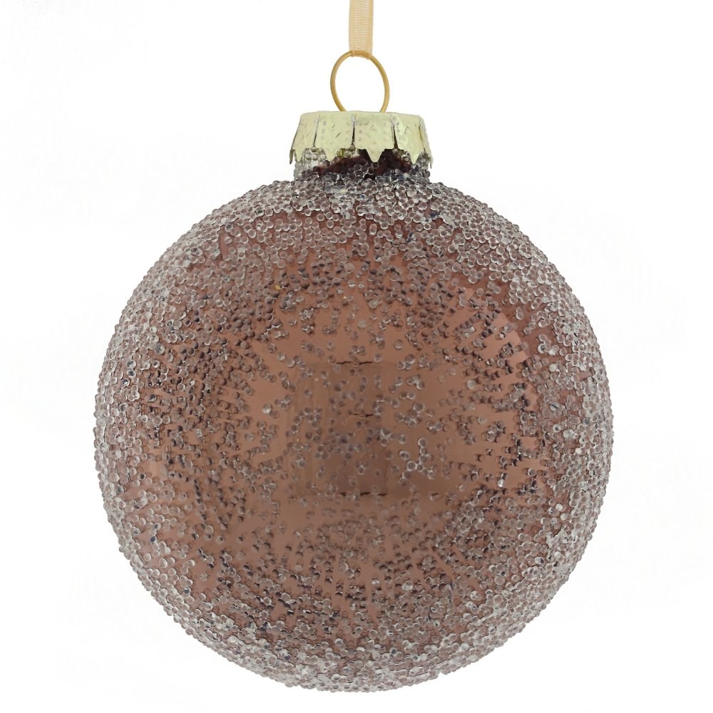 Стеклянный шар с потрясающей фактурой в виде россыпи капель. Это новогоднее украшение непременно порадует вас своим изяществом и прекрасно дополнит праздничный наряд лесной красавицы.