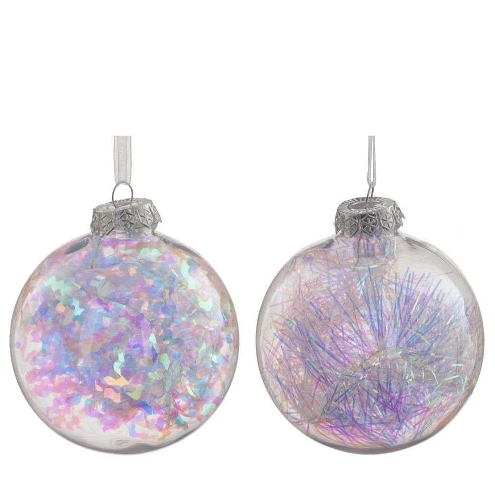 Новогодний пластиковый прозрачный шар с мишурой внутри. Украшение будет поистине празднично смотреться на хвойных веточках. Украсьте елку красиво и создайте собственное новогоднее настроение! Представлен в двух вариантах.