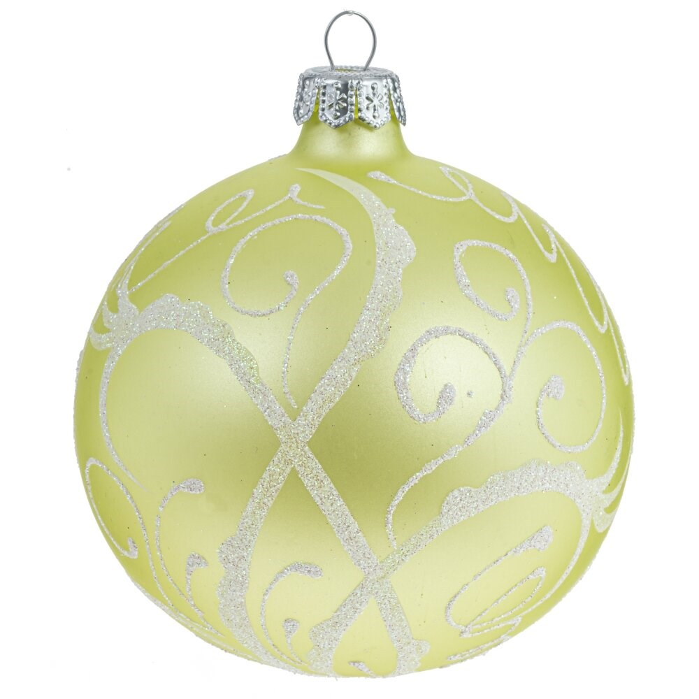Шар выполнен из стекла и покорит сердца любителей эффекта «морозный узор». Игрушка нежно-зеленого цвета украшена узором, словно нарисованным на окне самой природой. Он отлично украсит елку синего, белого и классического зеленого цветов.