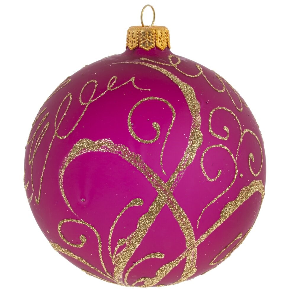 Вот готовое решение для украшения Вашей новогодней красавицы. Стеклянный шар фиолетового цвета, украшенный золотым узором, будет отлично смотреться на елочке .