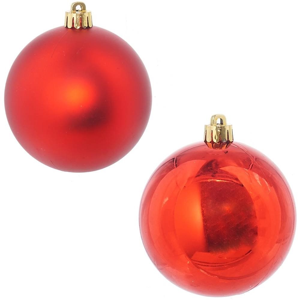 Набор из 4-х новогодних украшений (глянцевые и матовые красные елочные шары), изготовлен из полимерных материалов, в подарочной упаковке