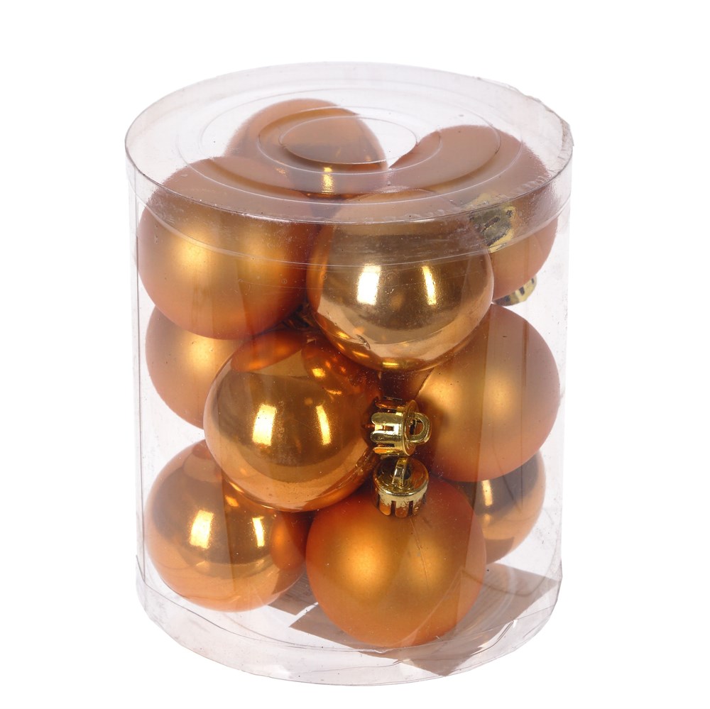 Набор из 12-ти новогодних украшений (матовые и глянцевые елочные шары медного цвета), изготовлен из полимерных материалов, матовые и глянцевые елочный шары в подарочной упаковке