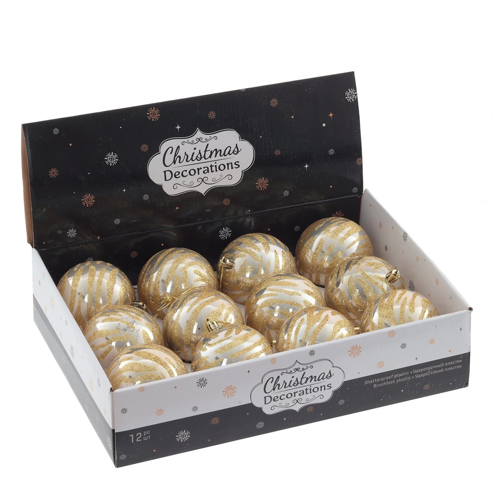 Набор шаров для елки в шоу-боксе. Эти новогодние шары с золотым узором непременно порадуют вас своим изяществом и прекрасно дополнят праздничный наряд лесной красавицы.