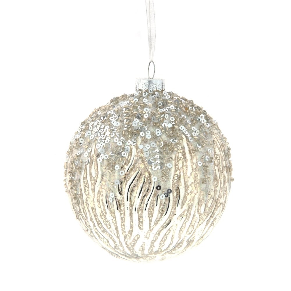 Новогодний светлый елочный шар с необычной фактурой, изготовлен из стекла и полимерных материалов, упаковка- коробка