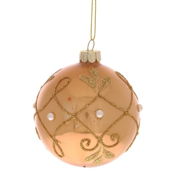 Новогодний изящный елочный шар с красивым узором, изготовлен из стекла