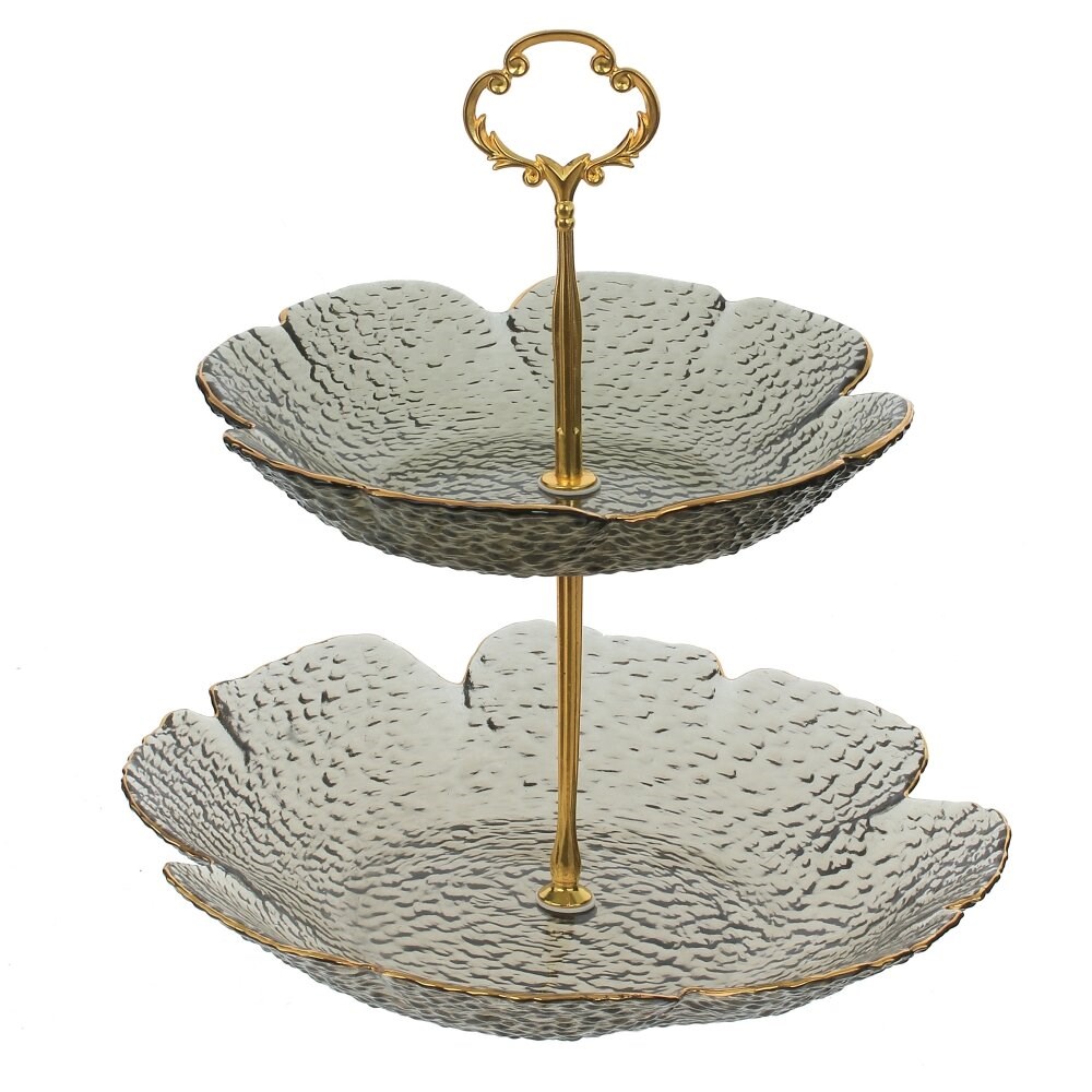 Приподнесите для своих гостей пирожные или фрукты на этой изящной и привлекательной вазе. Две стеклянные тарелочки, расположенные одна над другой, позволяют создать настоящую композицию из любимых угощений. Такая подставка может стать центральным элементом вашего праздничного стола.