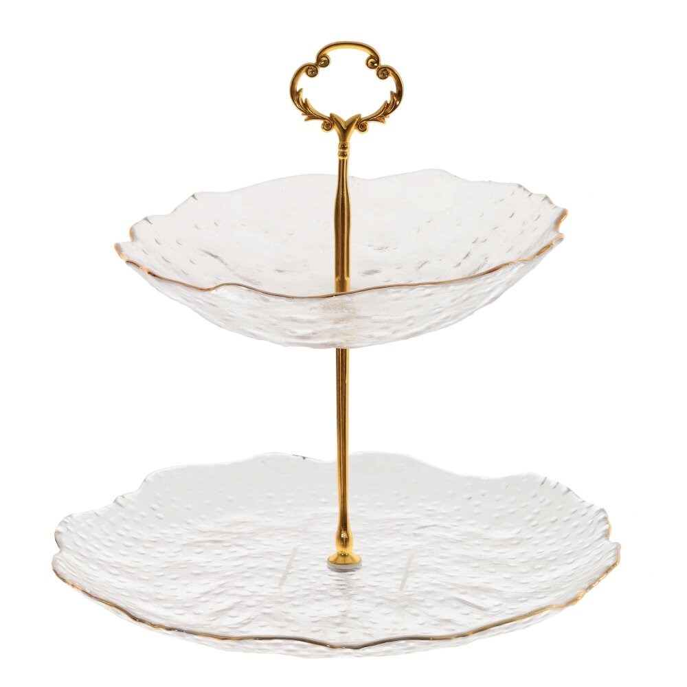 Приподнесите для своих гостей пирожные или фрукты на этой изящной и привлекательной вазе. Две стеклянные тарелочки, расположенные одна над другой, позволяют создать настоящую композицию из любимых угощений. Такая подставка может стать центральным элементом вашего праздничного стола.