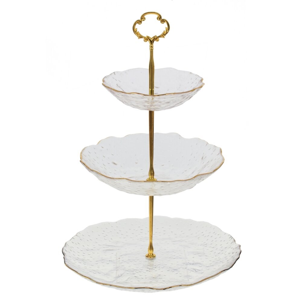 Приподнесите для своих гостей пирожные или фрукты на этой изящной и привлекательной вазе. Три стеклянные тарелочки, расположенные одна над другой, позволяют создать настоящую композицию из любимых угощений. Такая подставка может стать центральным элементом вашего праздничного стола.