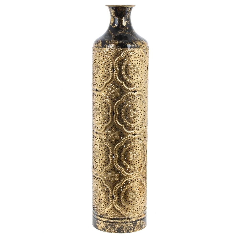 Напольная металлическая ваза с узким горлом для искусственных цветов и сухоцветов с рельефным рисунком. Диаметр горлышка 6 см. Изделие дополнит интерьер и привнесет в него индивидуальность. Рекомендуется избегать прямого контакта с водой, протирать пыль сухой тряпкой.