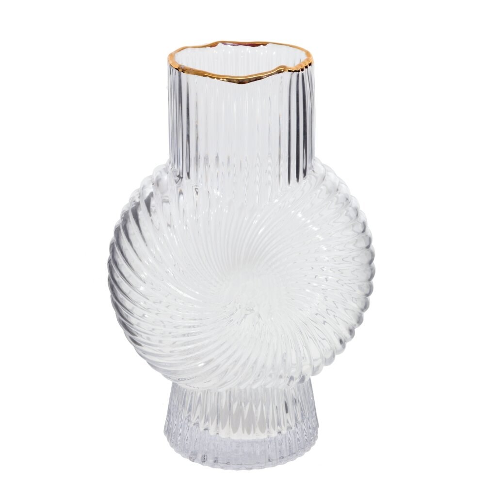 Стеклянная вазочка с рельефным рисунком и золотой каймой станет изысканным предметом интерьера. Ее можно можно использовать как самостоятельный декоративный элемент или для создания флористических композиций из цветов. С помощью такой вазы можно сделать обстановку более уютной и многогранной, она подходит для декорации пространства помещений. Также ваза может стать отличным подарком по любому поводу. Диаметр горловины: 8 см.