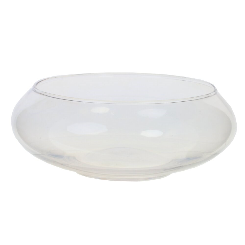 Стеклянная настольная ваза. В прозрачной емкости можно размещать простые букеты и флористические композиции. Стеклянная ваза смотрится как привлекательный и стильный элемент декора для всех жилых помещений. Диаметр горлышка: 16 см.