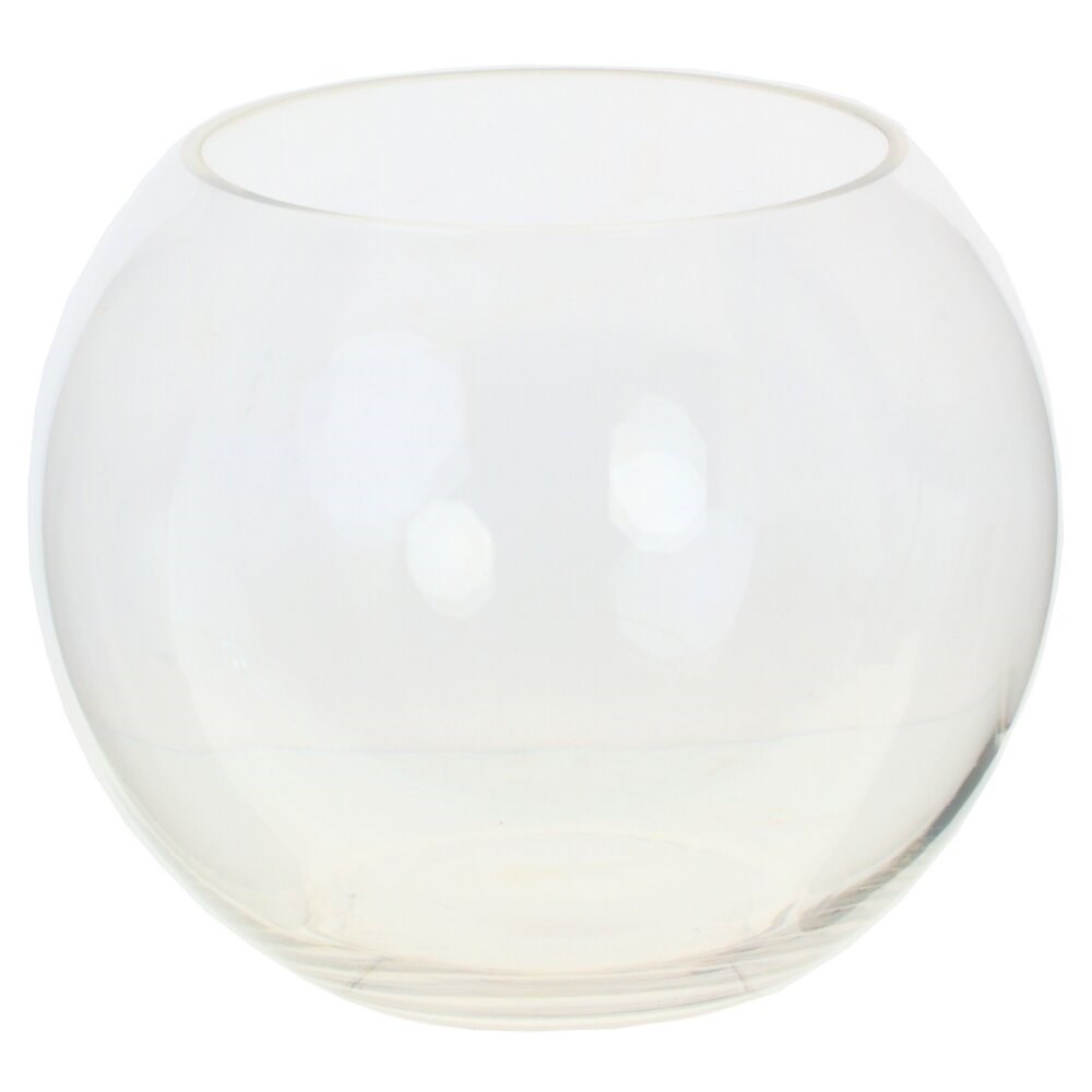 Стеклянная ваза круглой формы. В прозрачной емкости можно размещать простые букеты и флористические композиции. Стеклянная ваза смотрится как привлекательный и стильный элемент декора для всех жилых помещений. Диаметр горлышка: 15 см.