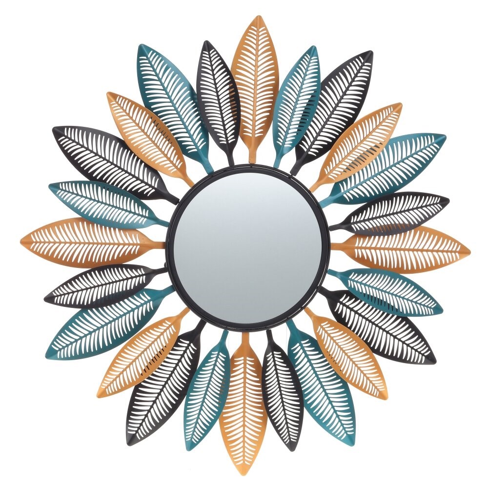 Круглое зеркало заключено в раму из металла в виде цветка. Оригинальный и функциональный предмет интерьера украсит любую комнату.